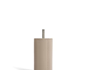 A tapered leg in leather or solid wood.