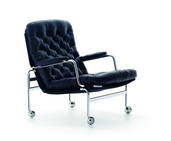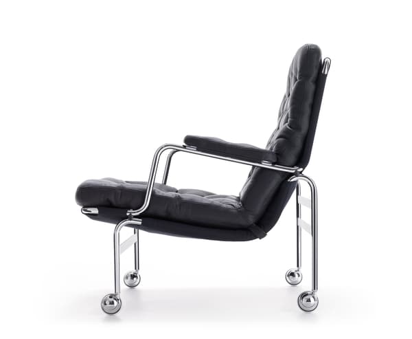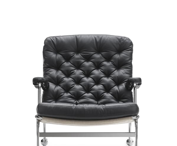 Classic elegant easy chair designed by Bruno Mathsson. Karin 73 is neat with a frame in fine chrome and a deep stitched cushion.
