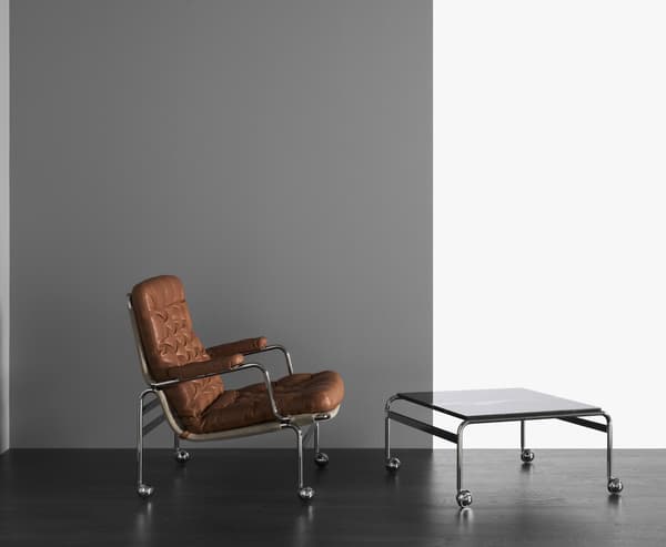 Four years after the first Karin armchair was launched a new model was created, named Karin 73. After having been out of production for over 20 years, Karin 73 was successfully relaunched as part of the DUX Design Revival 2012. Unlike the ordinary Karin armchair, which has buttons in the back and seat, Karin 73 has a deep-tufted cushion.
