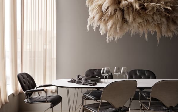A classic dining table that can be extended. For 6-8 people, elegant top and slim legs.
