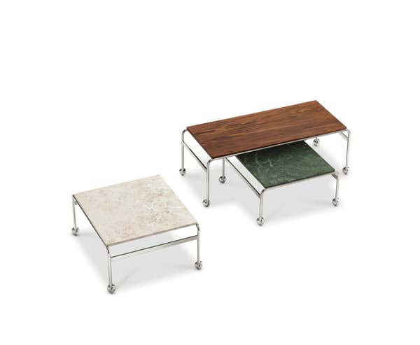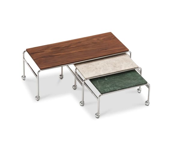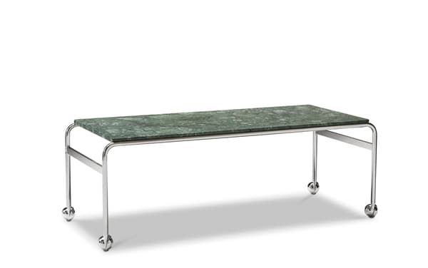Based on Bruno Mathsson’s original table, designed to accompany his classic chair, this option provides the largest amount of surface space, but with the same elegant aesthetics of the Karin collection. The chrome-plated frame is topped in exclusive marble or walnut.