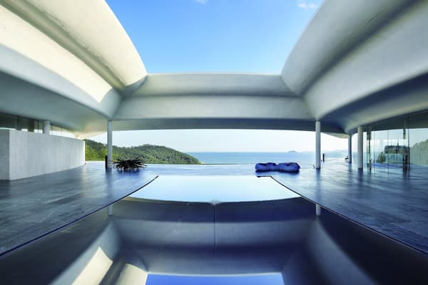 South Cape Spa and Suites is a resort complex facing the South Sea on the Korean Peninsula, where you can also enjoy playing golf. This luxury resort, which is open to the sea, offers guests the ultimate in relaxation. The concrete walls undulate like waves along the building, creating a dynamic appearance that makes it seem to float in the sky. Guest rooms are furnished with DUX beds and Ligne Roset furnishings, and you can enjoy a Geneva sound system. In addition, the rooms feature Aesop amenities. Don't miss the rare pianos and artwork scattered throughout the building.