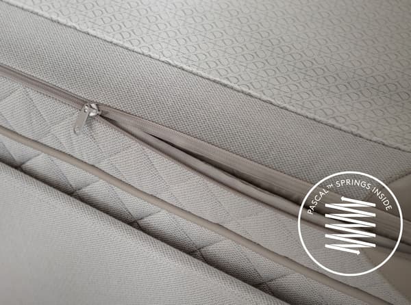 The top layer of The DUX Bed with Pascal can be unzipped to reveal six interchangeable spring cassettes; three for each side. You can arrange the cassettes based on your body size, shape and needs.